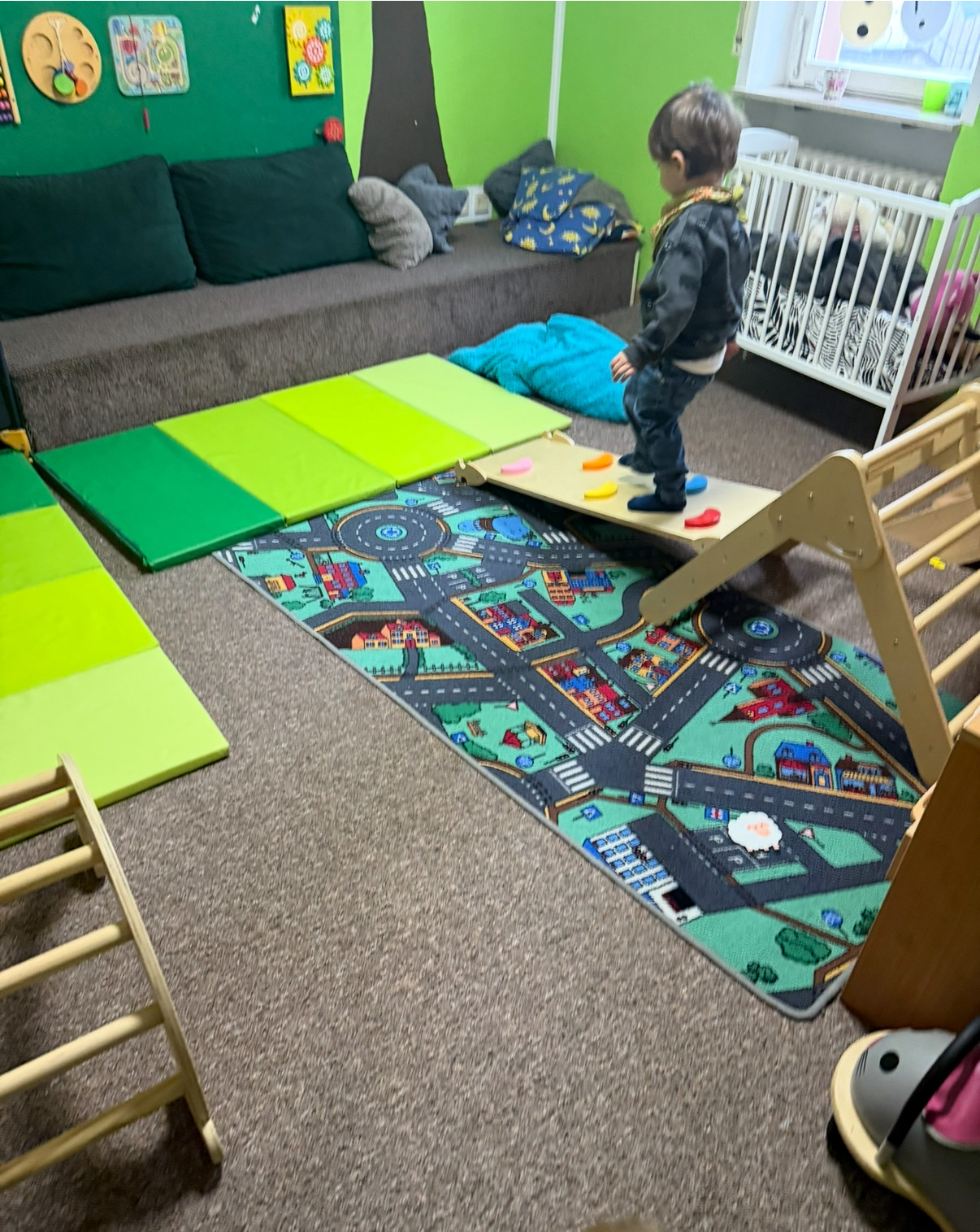 Turnen, Kinderyoga, Naturerkundungen und freie Bewegung sind feste Bestandteile unserer Tagespflege.